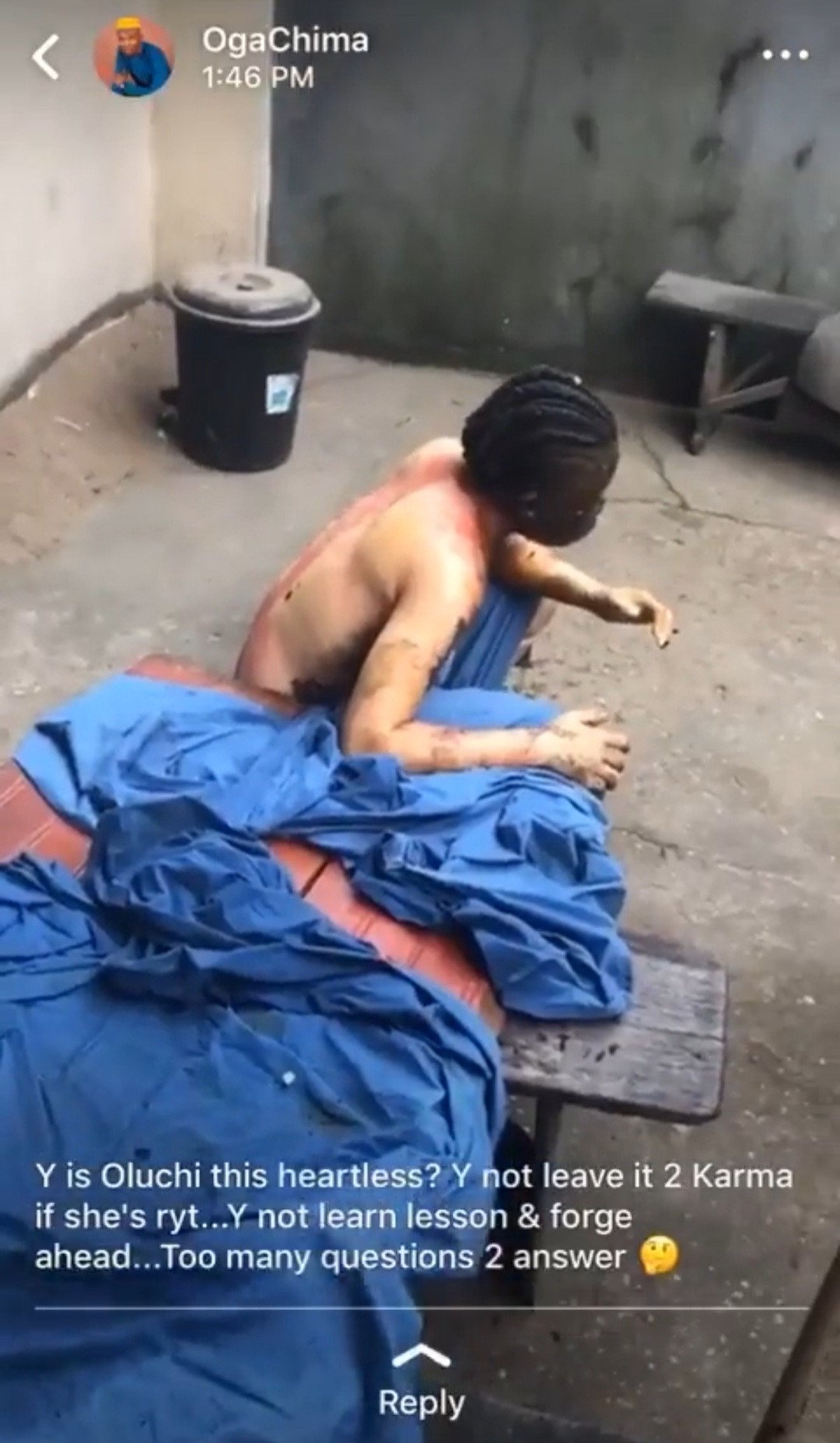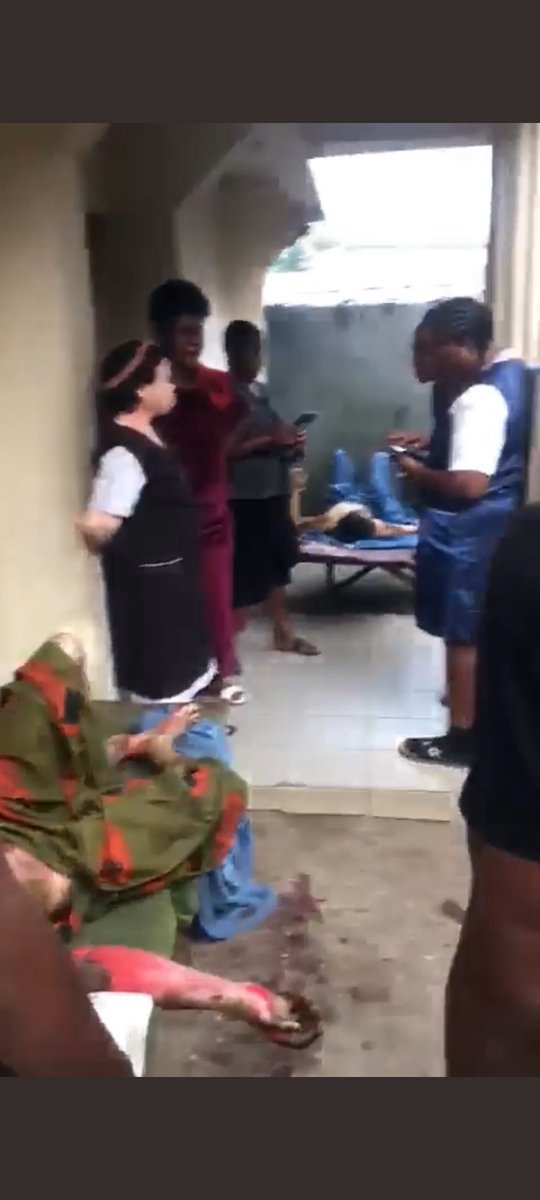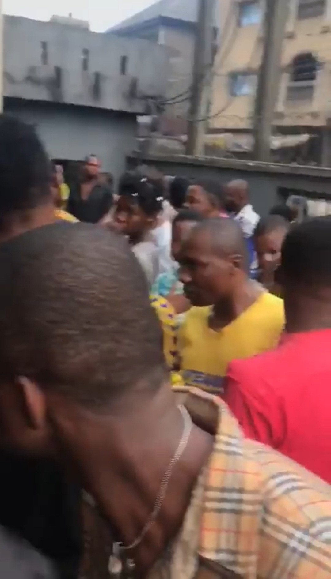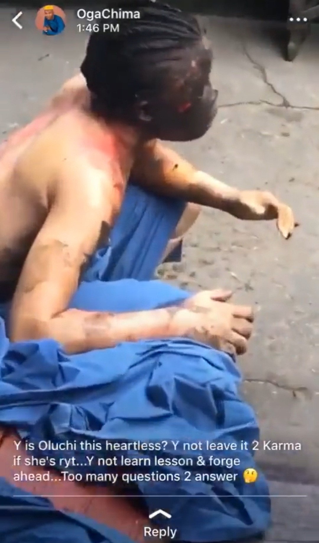 Spectators are heard berating Oluchi for her actions as she writhes in pain.